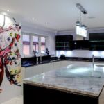 The biggest statement piece in this kitchen is the bespoke feature wine rack. The clients wanted to add an artistic touch so a graffiti artist created a unique design on this exciting feature in their new kitchen.
