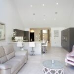 The materials and colours present a bold contrast, making a statement in this open plan living area.