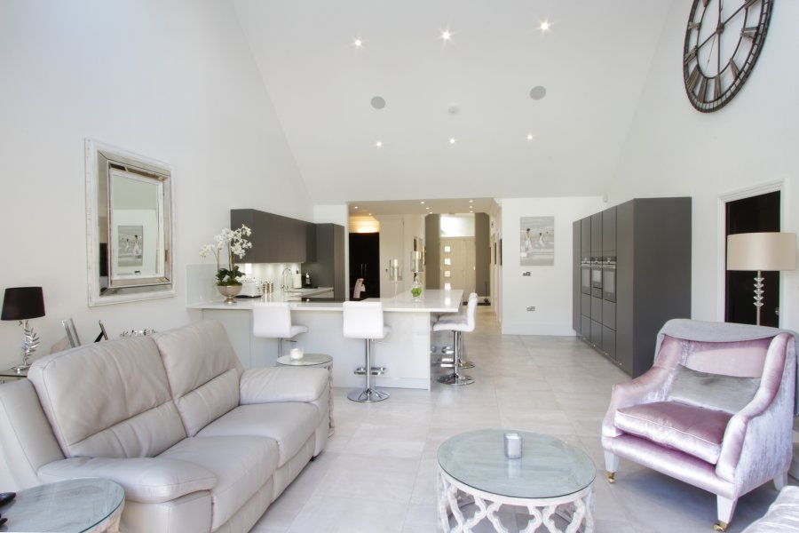 The materials and colours present a bold contrast, making a statement in this open plan living area.