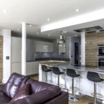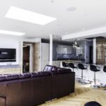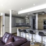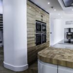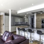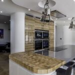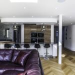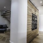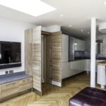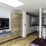 As well as the kitchen, the client wanted us to create a media unit for their TV/lounging space. Our designer, Maxine, used the same finishes as the kitchen to marry the two spaces, she also incorporated a hidden doorway into this area, with the tall cupboard leading to another room.