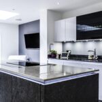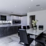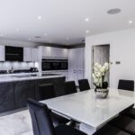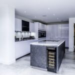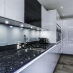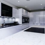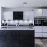 This beautiful kitchen is a mix of ‘Polar White’ gloss and ‘Black Star’ cabinetry.
