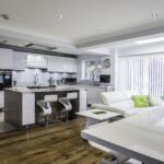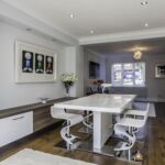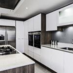 Lighting is very important in a kitchen, especially in an open plan space, where lighting in each zone creates a different ambience. In this clients kitchen, plinth lights and wall unit lights help to set an atmosphere.