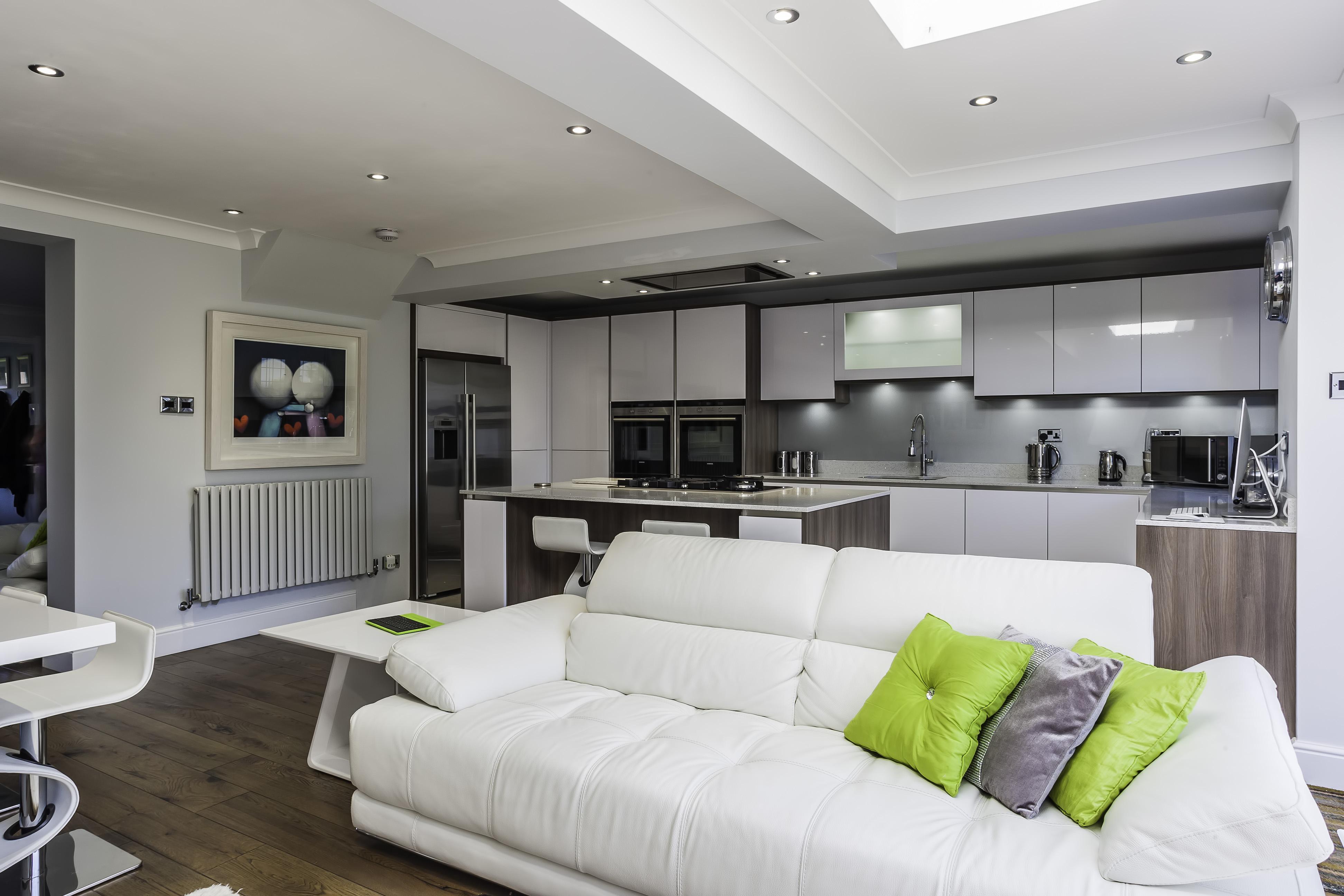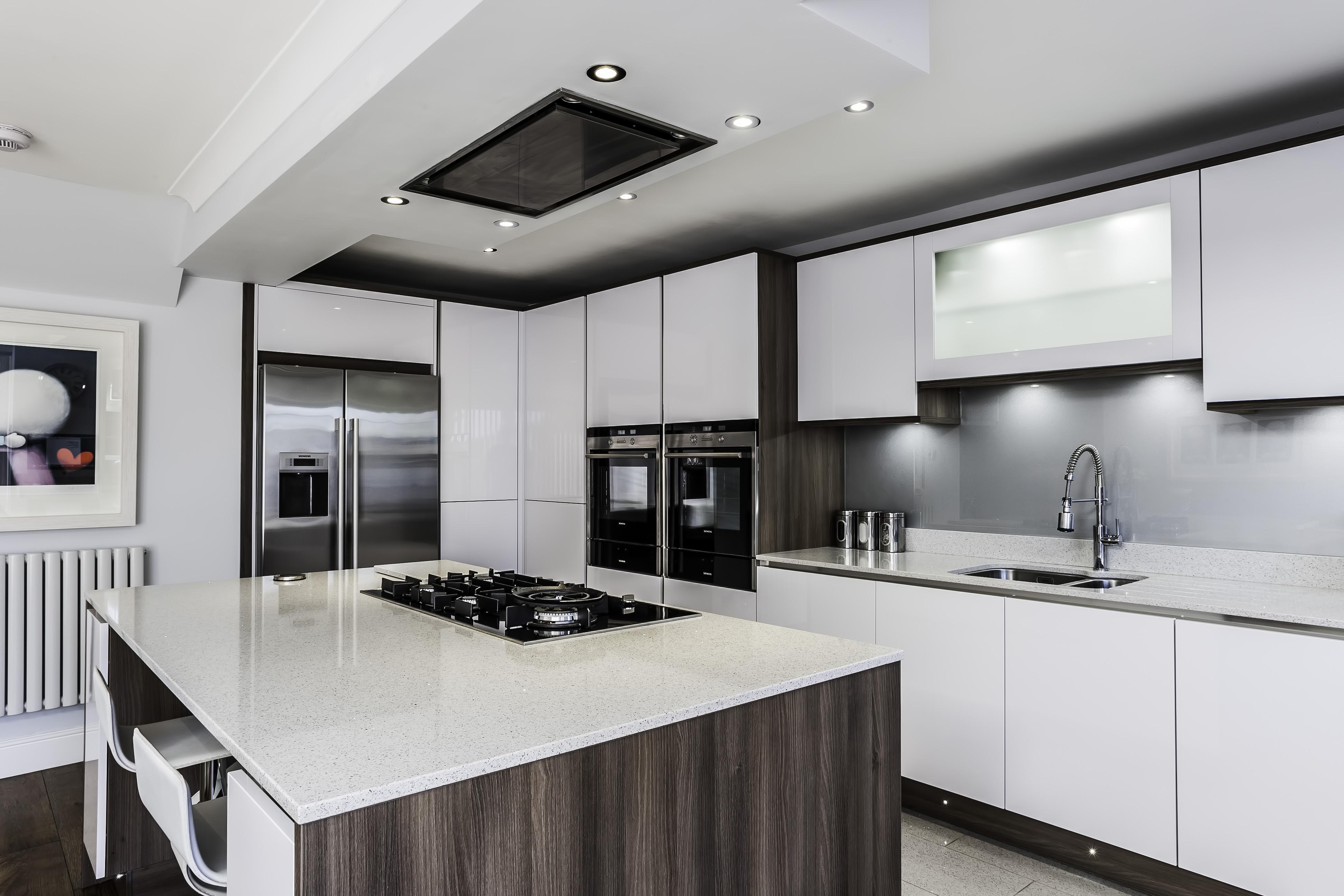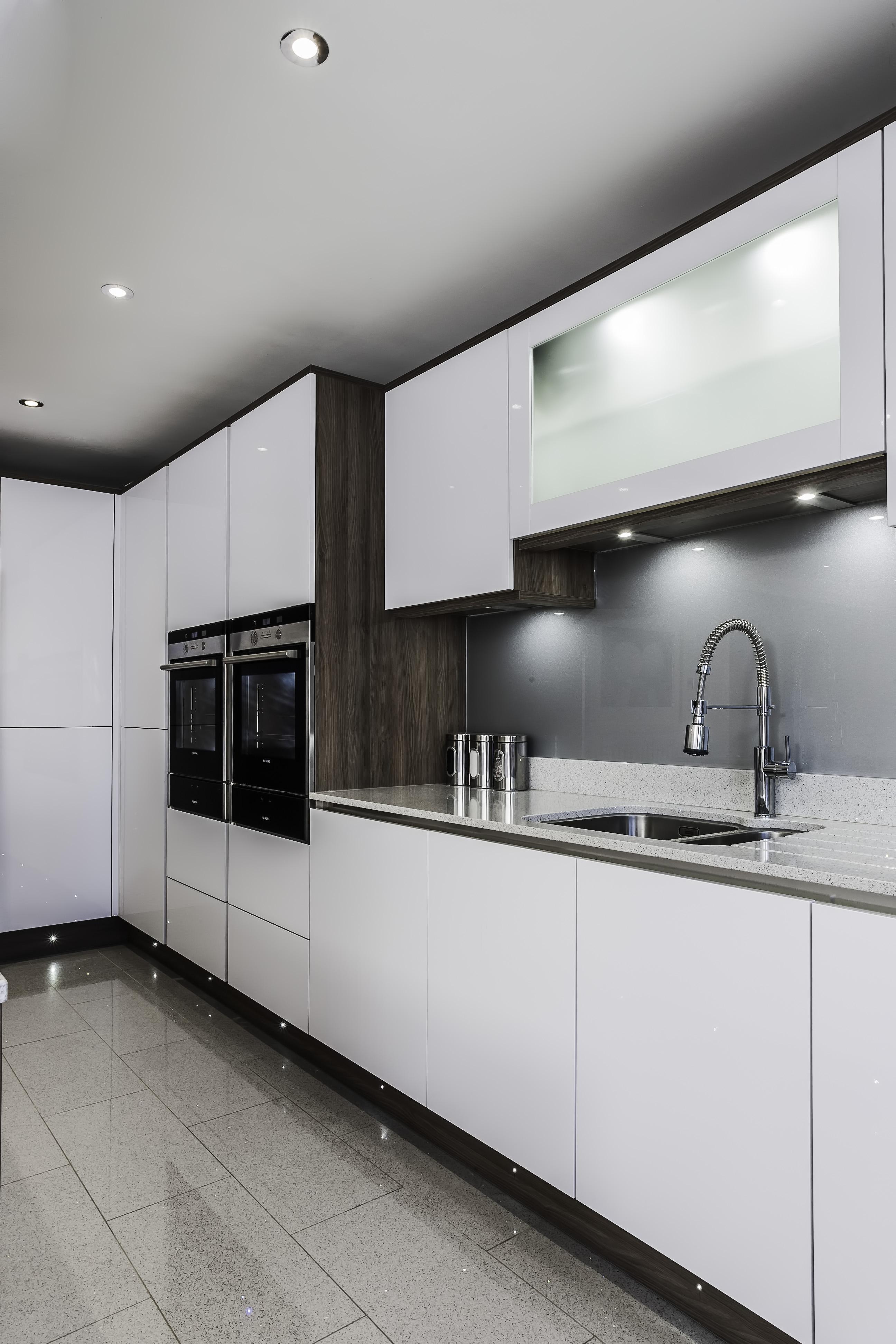 Lighting is very important in a kitchen, especially in an open plan space, where lighting in each zone creates a different ambience. In this clients kitchen, plinth lights and wall unit lights help to set an atmosphere.