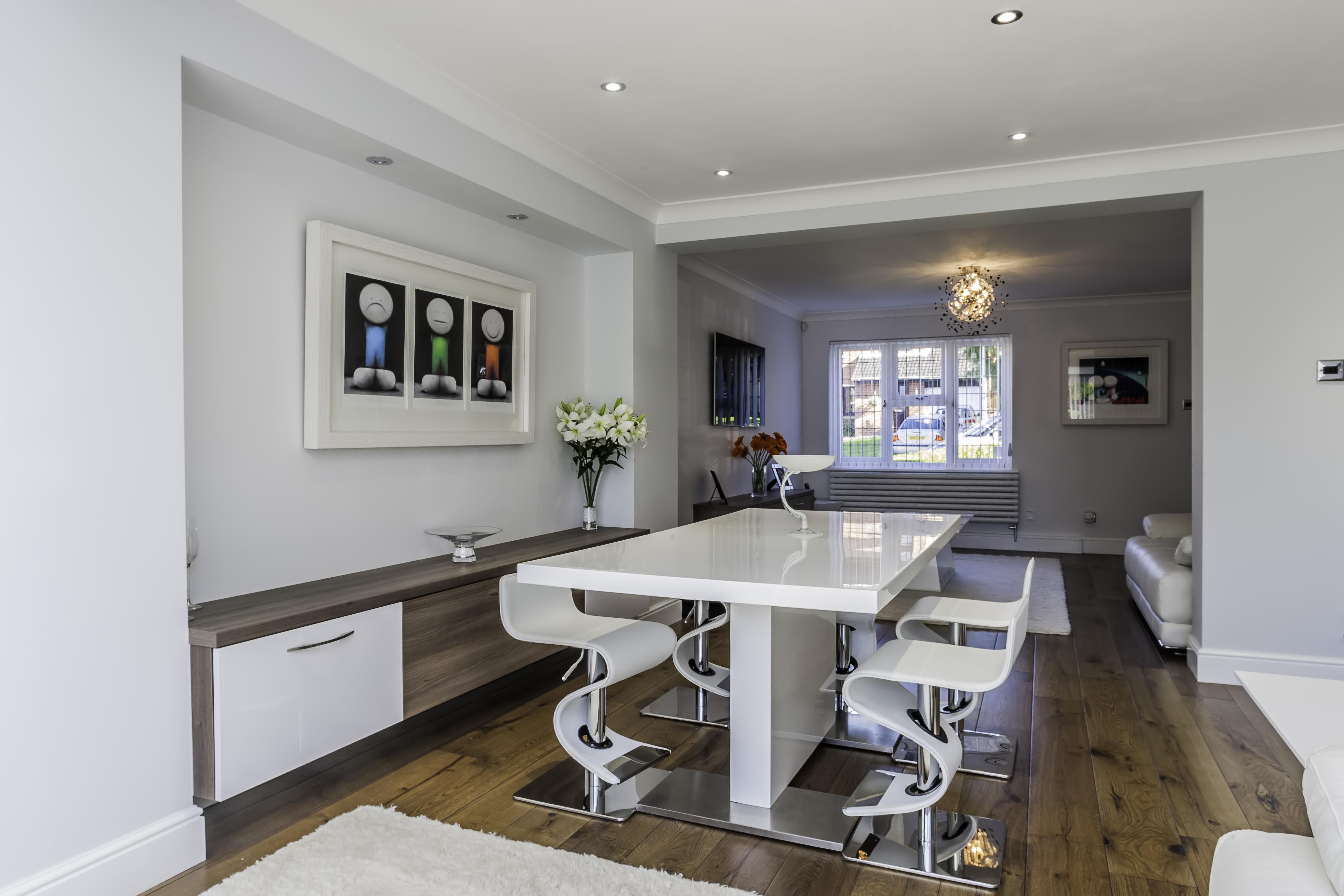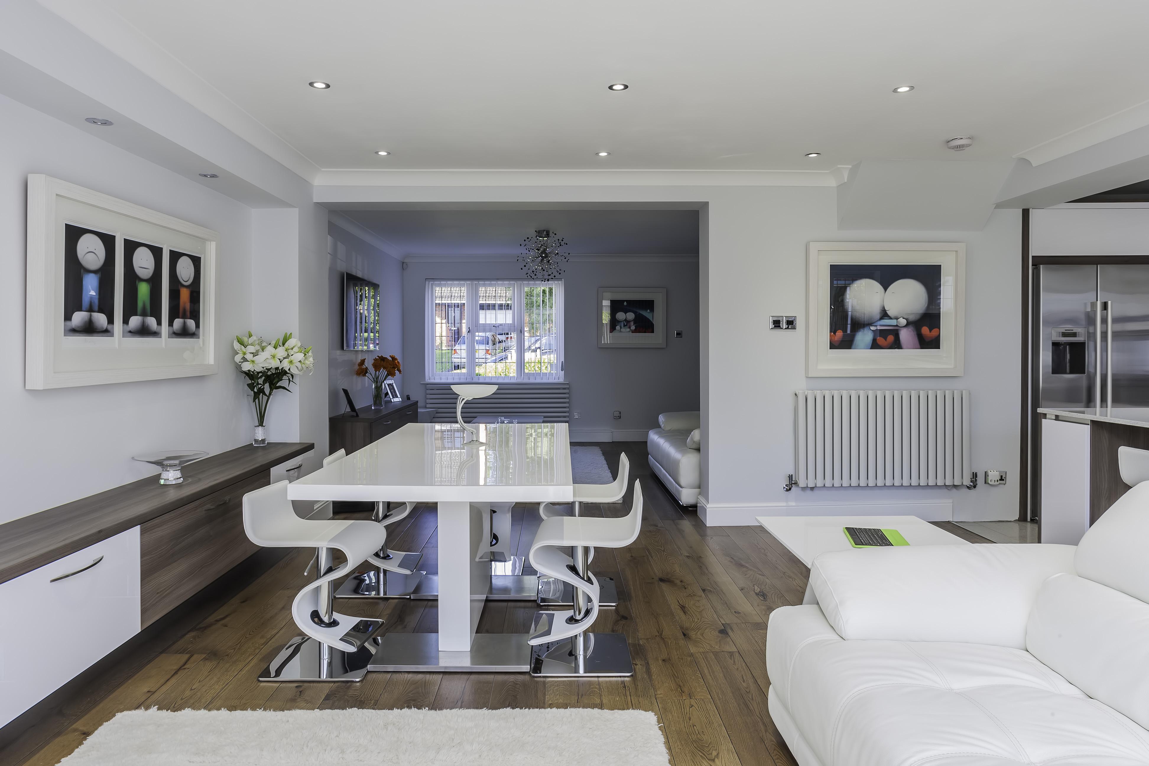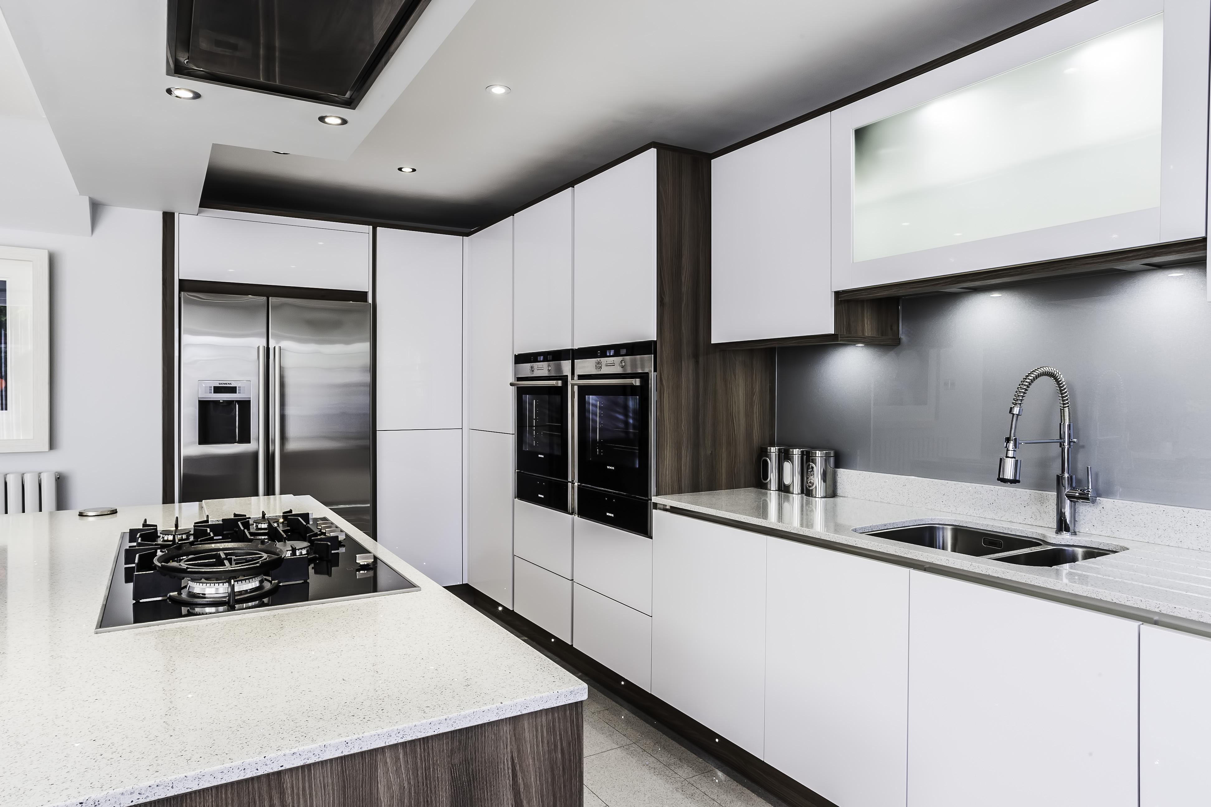 Lighting is very important in a kitchen, especially in an open plan space, where lighting in each zone creates a different ambience. In this clients kitchen, plinth lights and wall unit lights help to set an atmosphere.