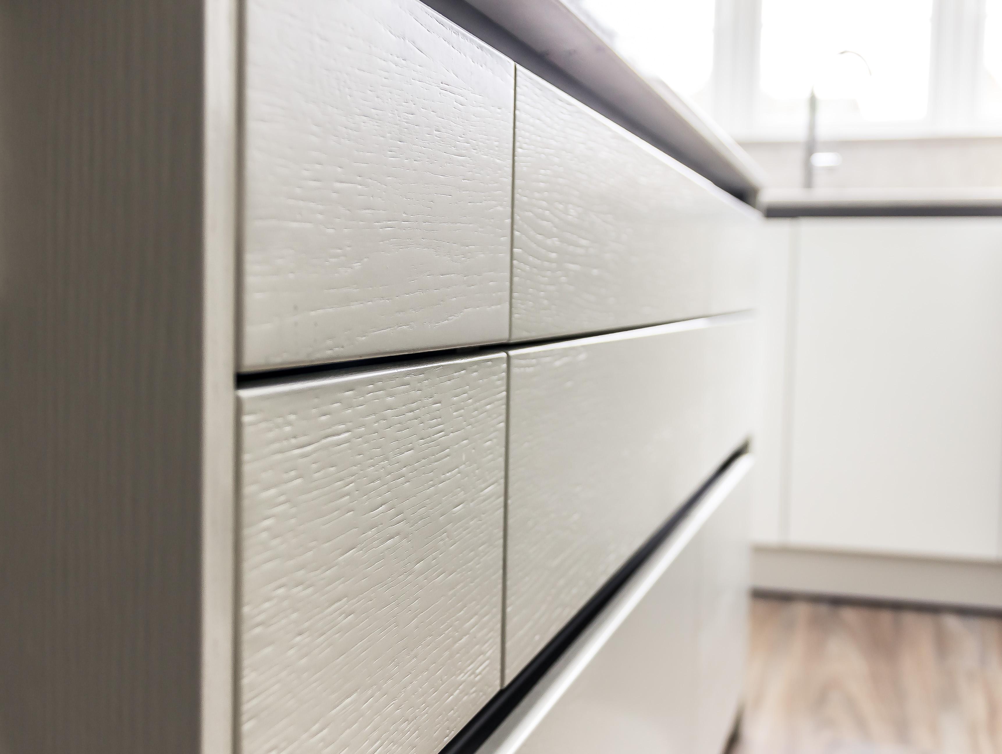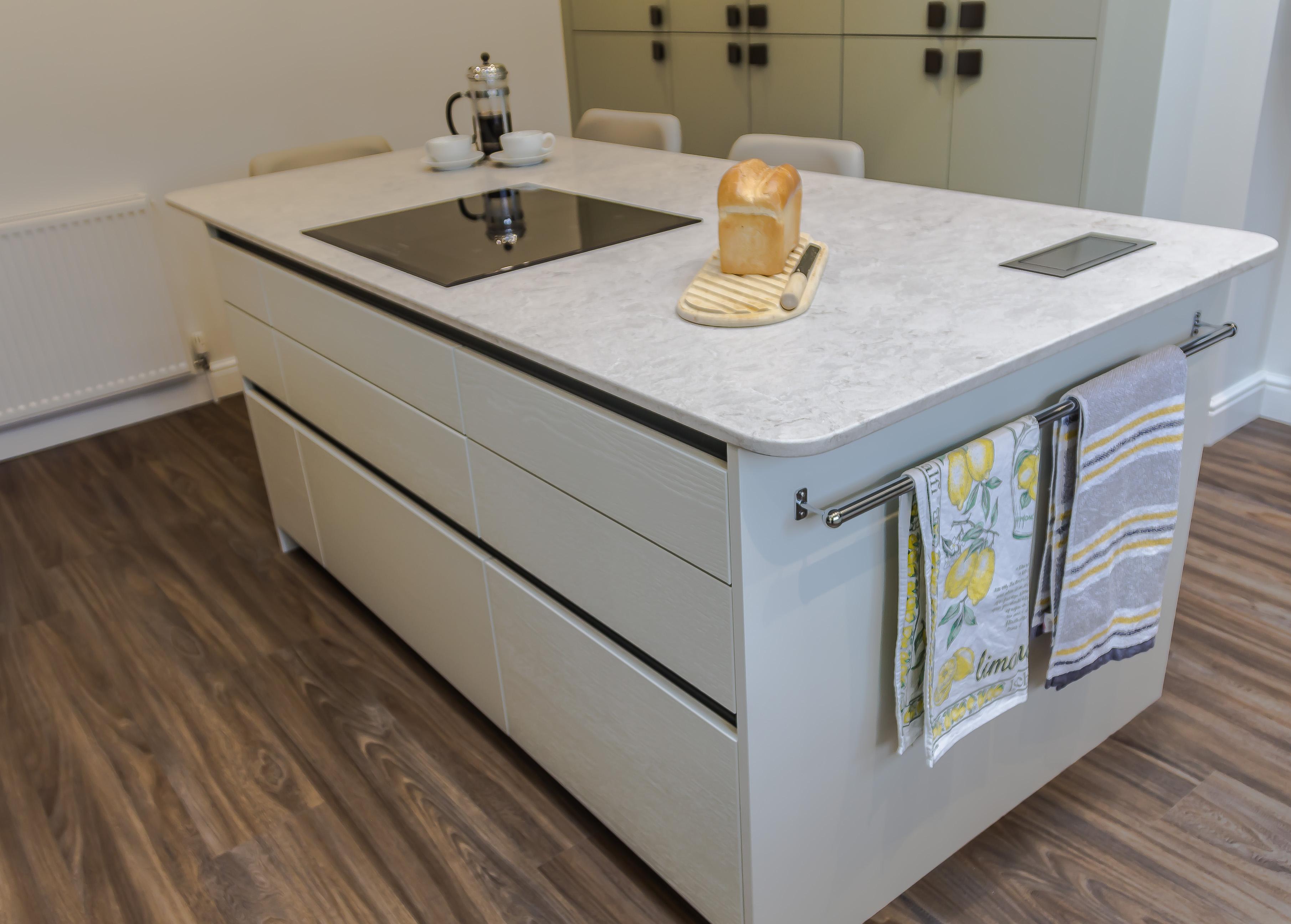 The island was an important part of the design with the client wanting plenty of storage. Wide drawers provide the perfect solution, with everything visible and easily accessible.
