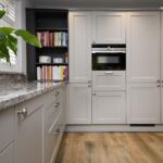 To continue the line of the tall units the customer has added in an open bookcase sitting on top of the worktop. This is a great use of the space that would otherwise be a dead corner with no easy point of access. This has been made into a feature by finishing it in ‘Charnwood diamond grey’which makes all the customer cook books pop.